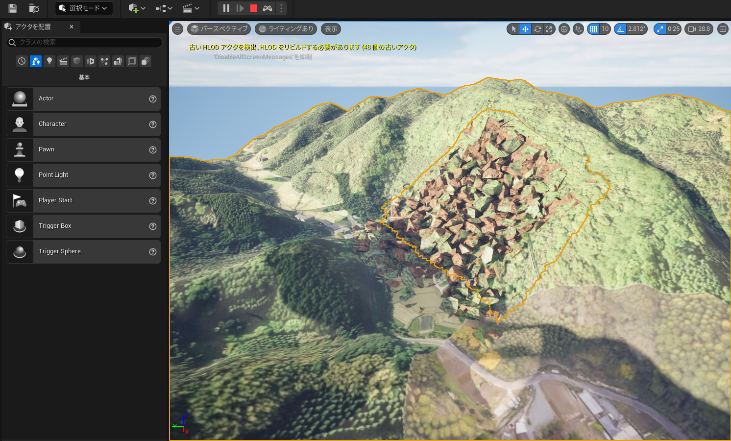 Chaos Destructionを用いた斜面崩壊シーンのデモ動画
