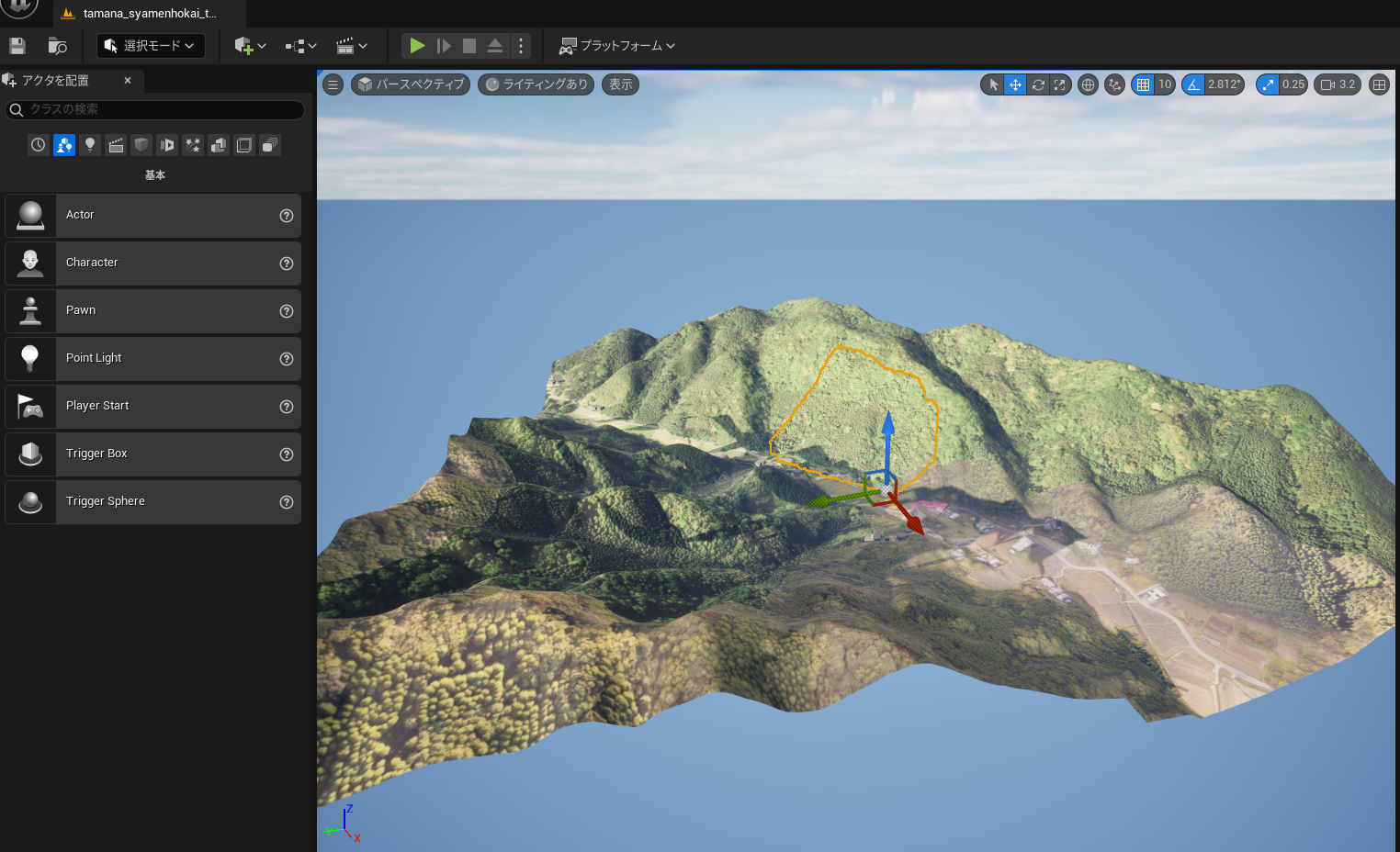 先ほど編集したモデルたちをUEに読み込み位置を合わせます。いい感じにはまりました。
