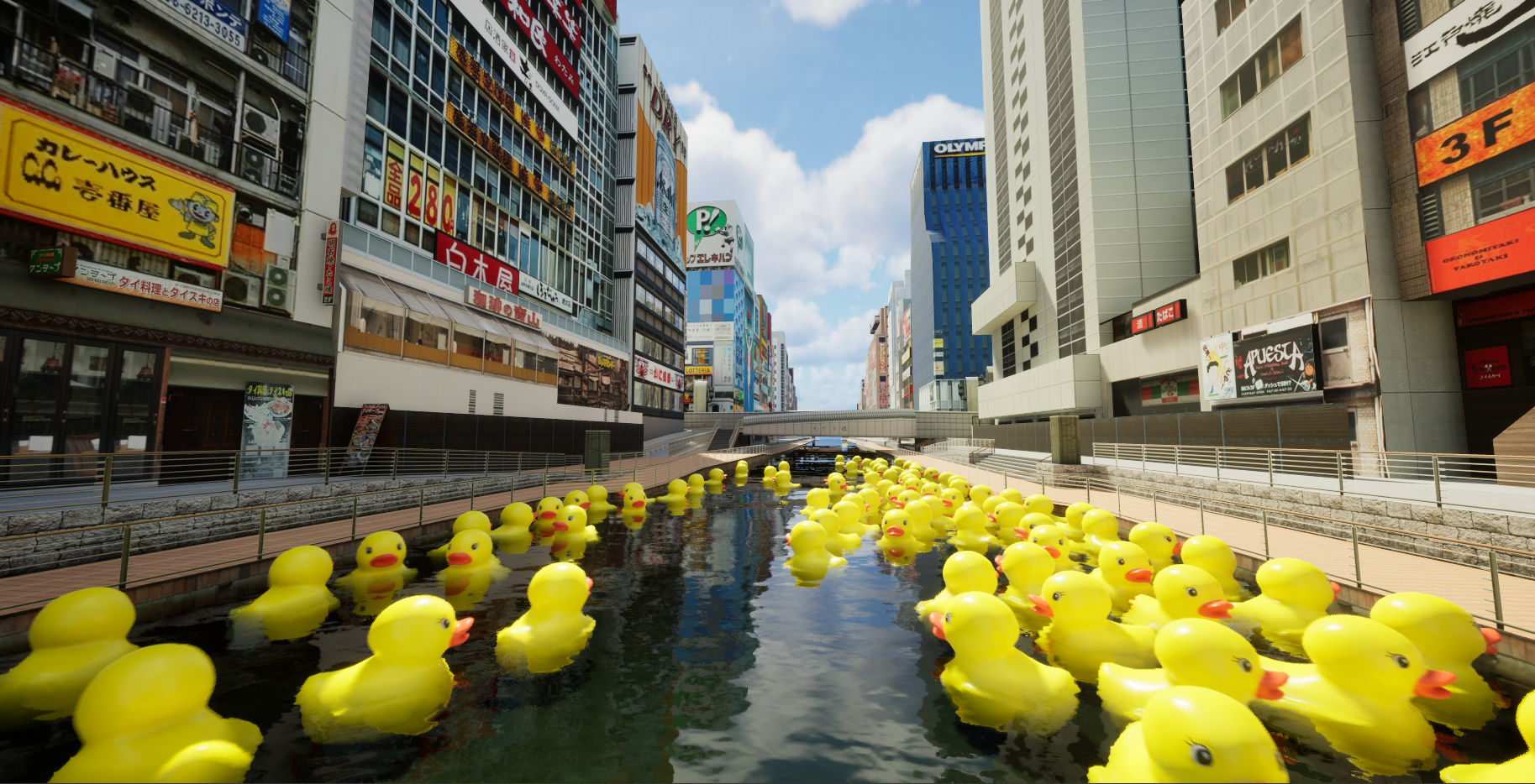 道頓堀の「ひよこ」は水面に浮かせるオブジェクトであるため、前述とは別の設定が必要です。