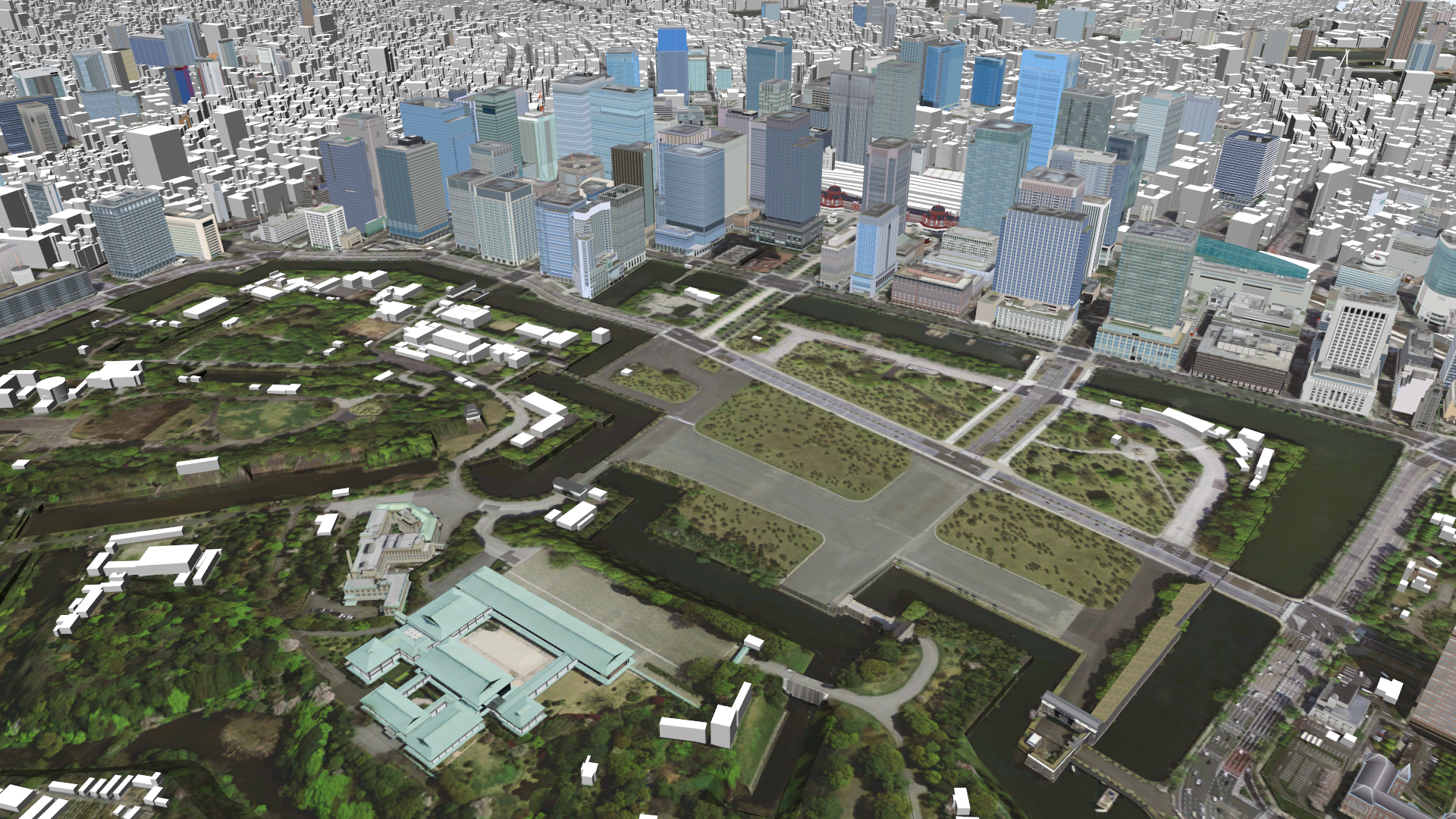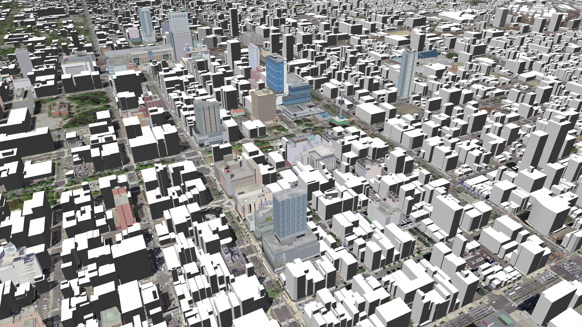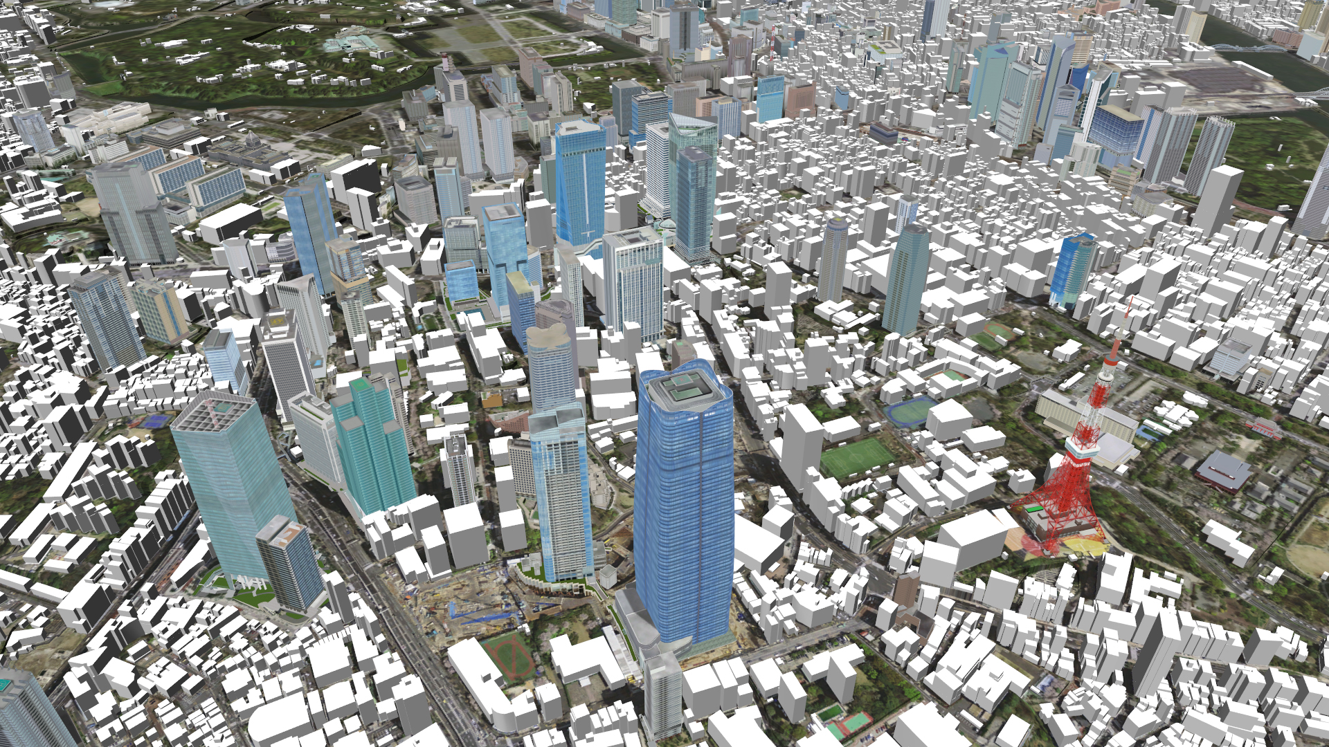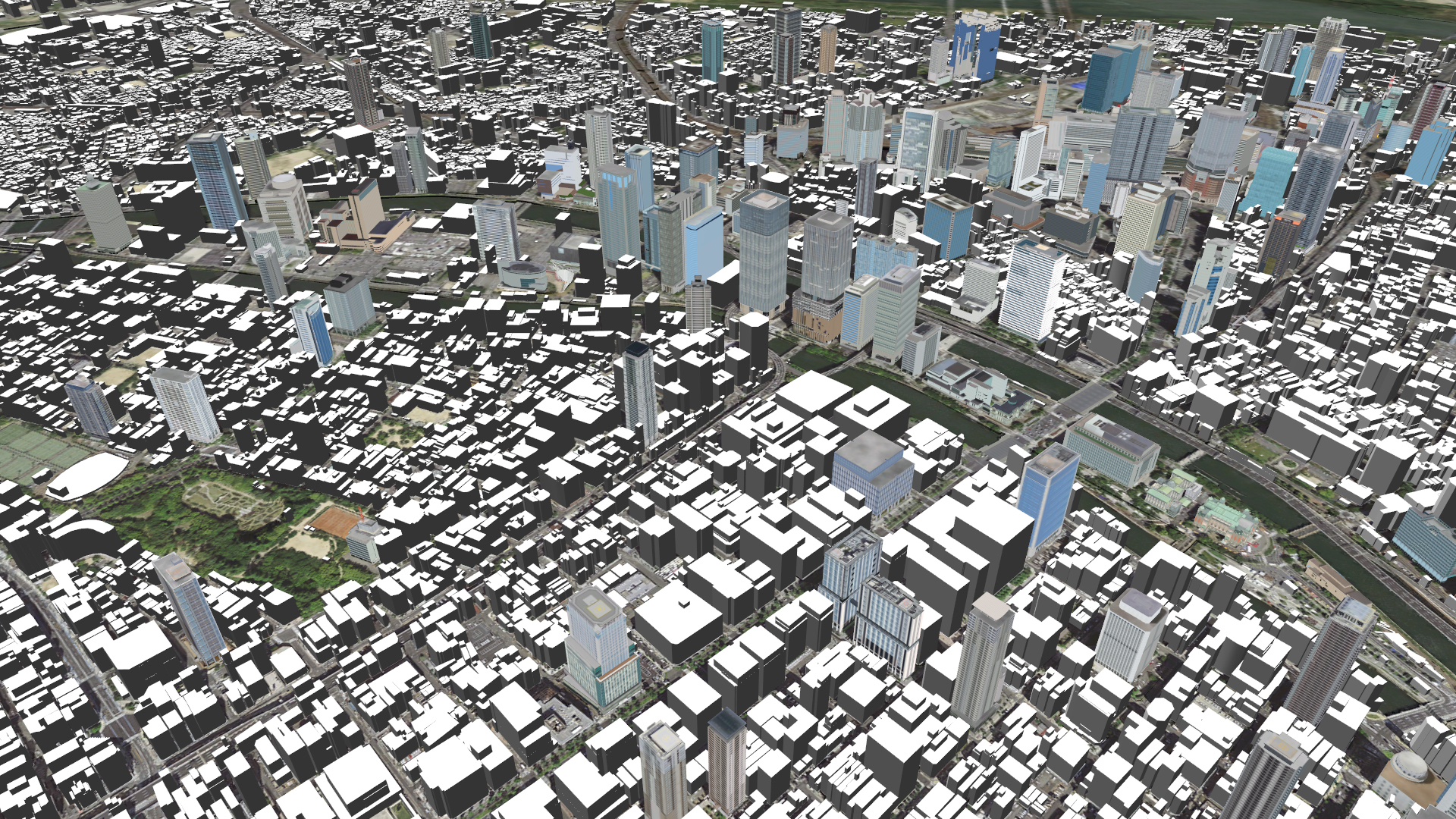 対象エリアは東京都23区および13政令指定都市となっており、都市計画や景観設計、眺望シミュレーション、ナビゲーション、映像素材など、多岐に渡り活用されています。