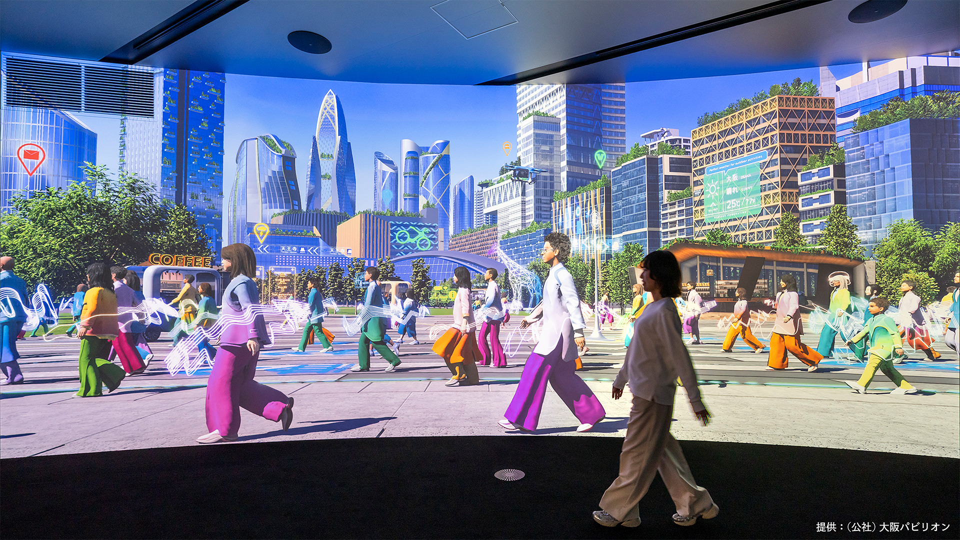 リボーンした「ミライのじぶん」がリアルタイムに参加して、2050年の大阪を舞台にパレードを繰り広げる